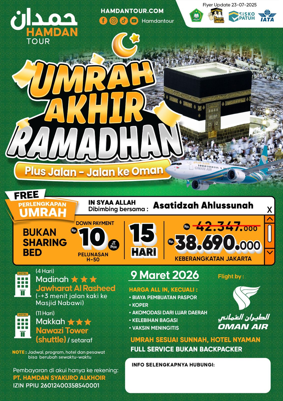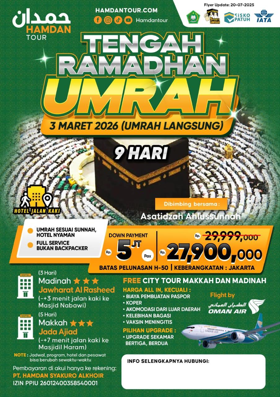 Umrah bersama kami Rahima.id agen resmi Hamdan Tour, kami kasih jaminan untuk semua keraguan Anda: